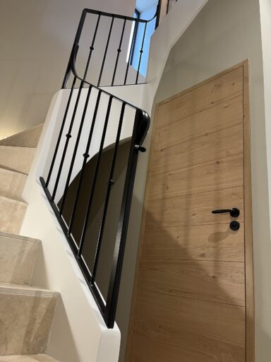 Les toiles de protection sont installées sur l’ensemble des éléments ne devant pas être peints. Les surfaces à peindre sont ensuite soigneusement poncées et nettoyées pour qu’elles soient planes et uniformes.