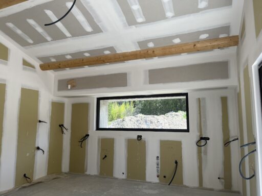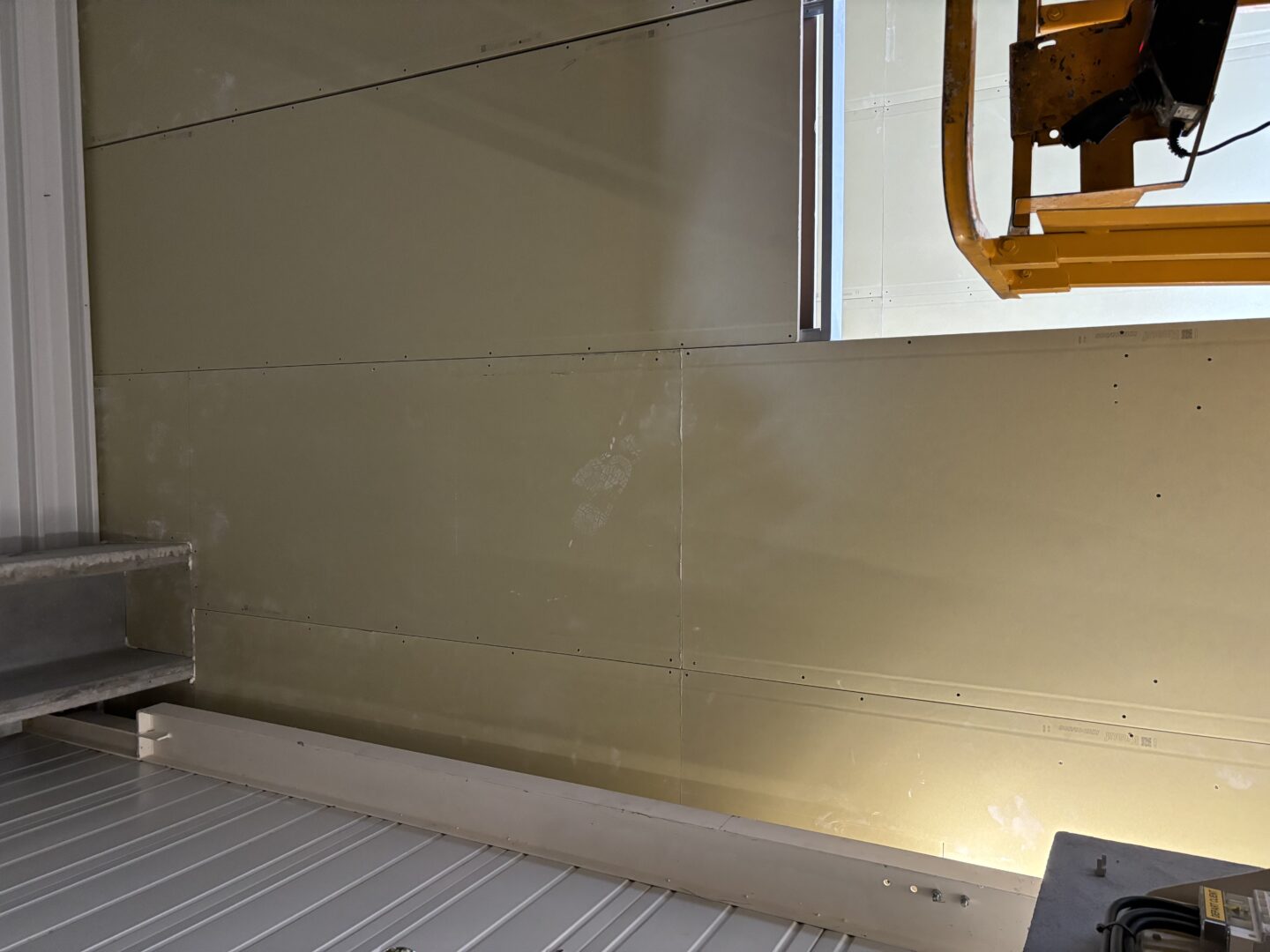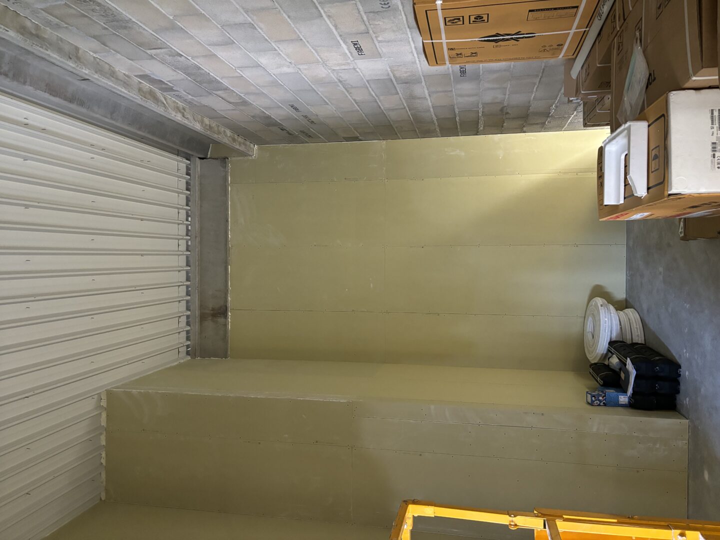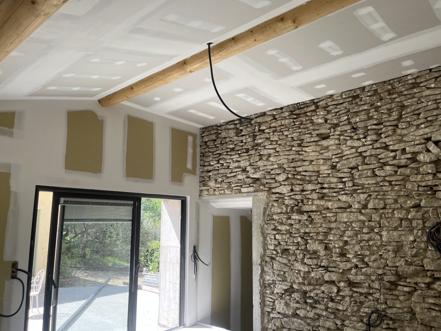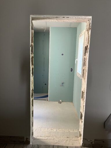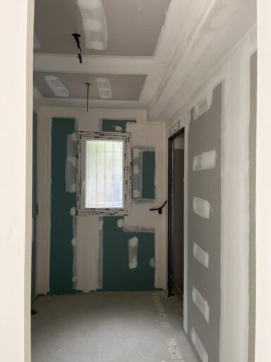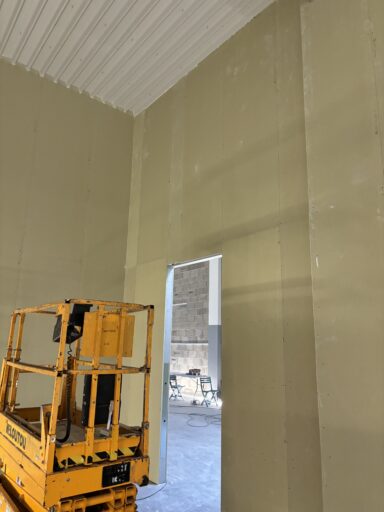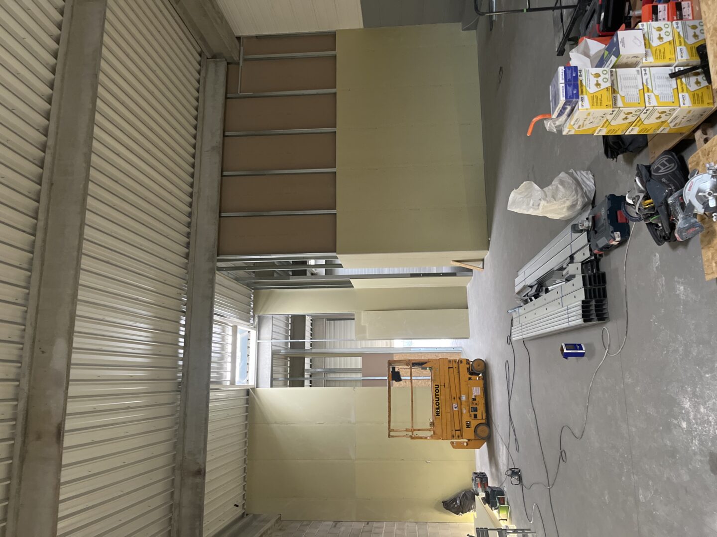 Après avoir combler d’éventuels trous et fissures des murs avec de la mousse expansive, une ossature métallique est créée sur-mesure et installée pour recevoir les plaques de plâtre. Les espaces entre les murs et les rails peuvent ensuite être remplis avec un isolant.