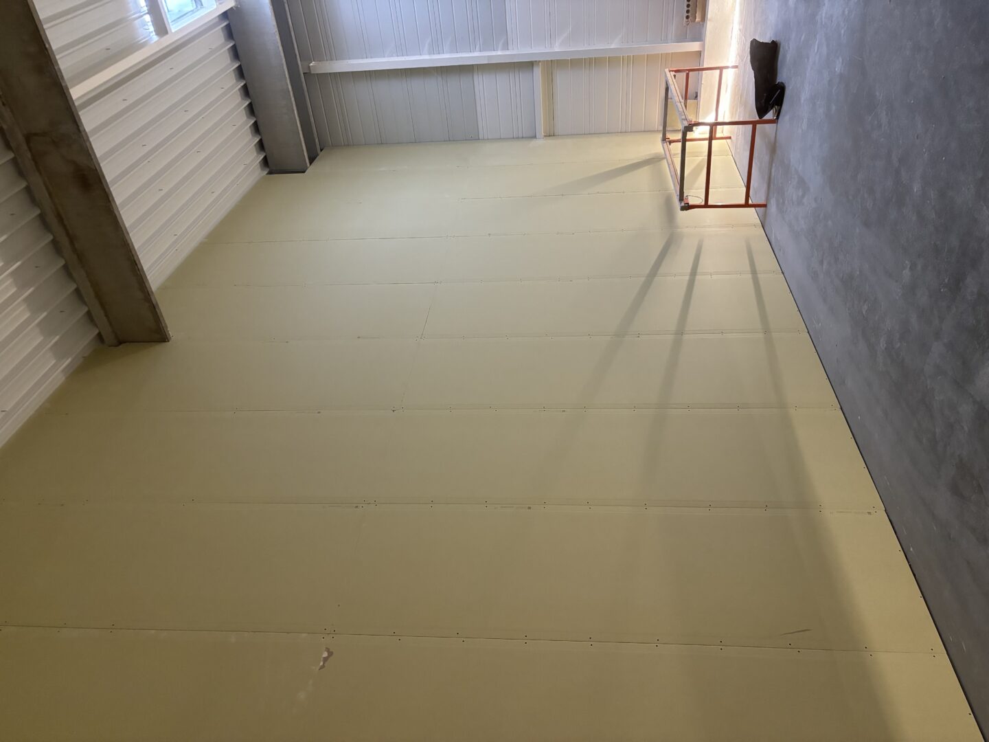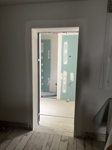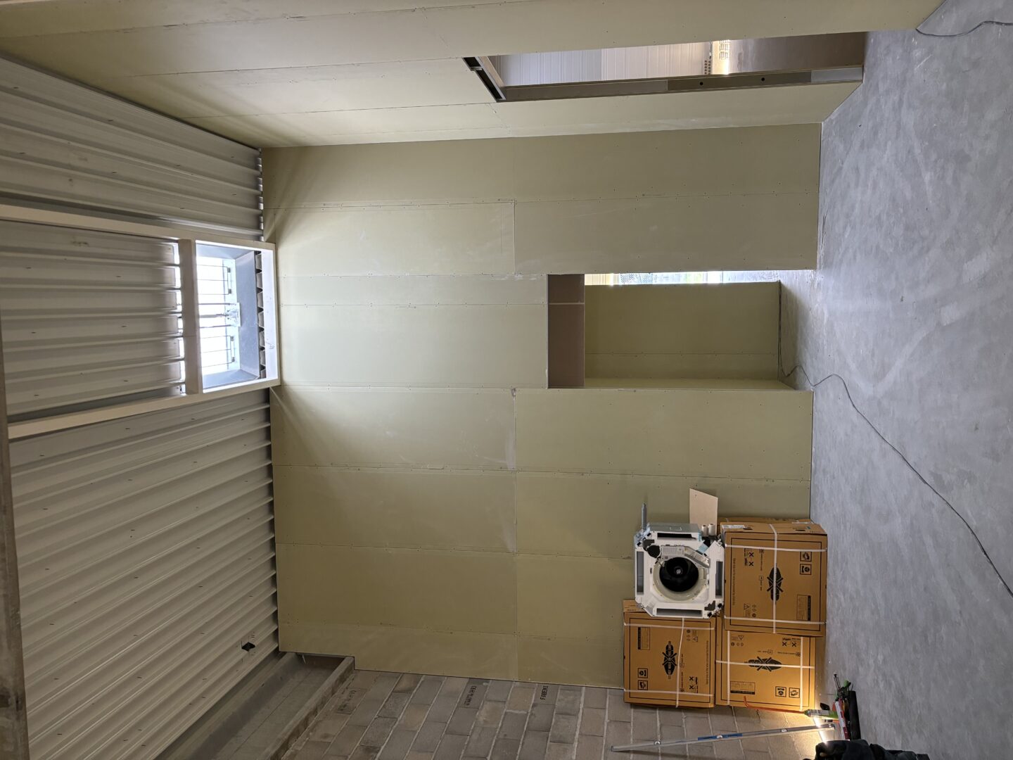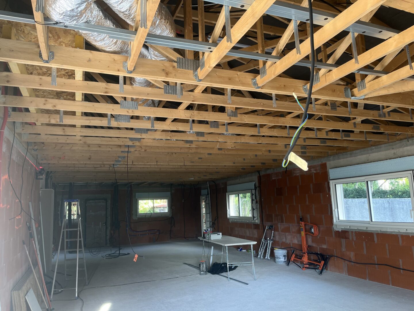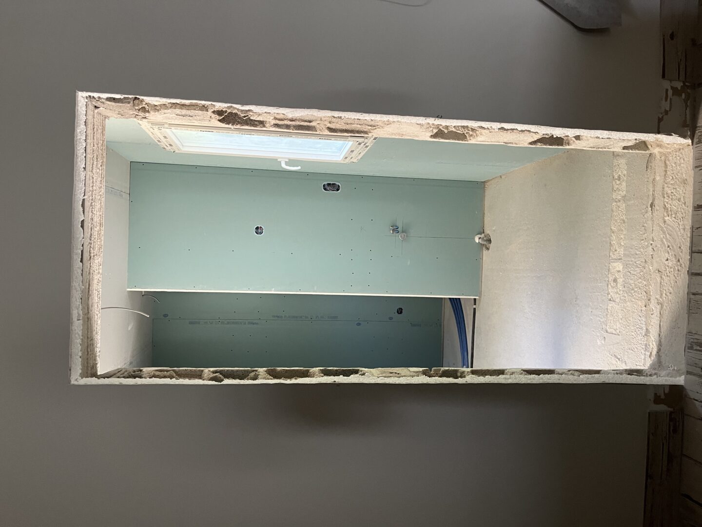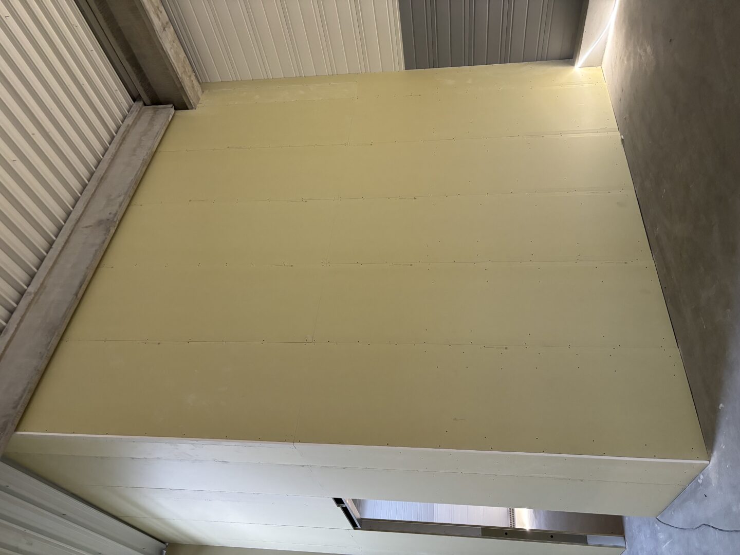 Après avoir combler d’éventuels trous et fissures des murs avec de la mousse expansive, une ossature métallique est créée sur-mesure et installée pour recevoir les plaques de plâtre. Les espaces entre les murs et les rails peuvent ensuite être remplis avec un isolant.