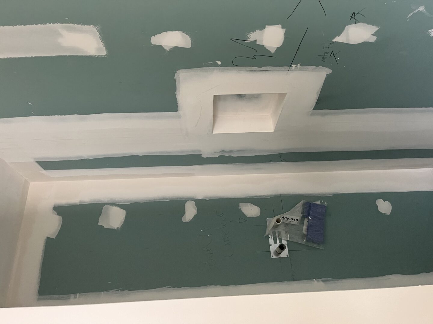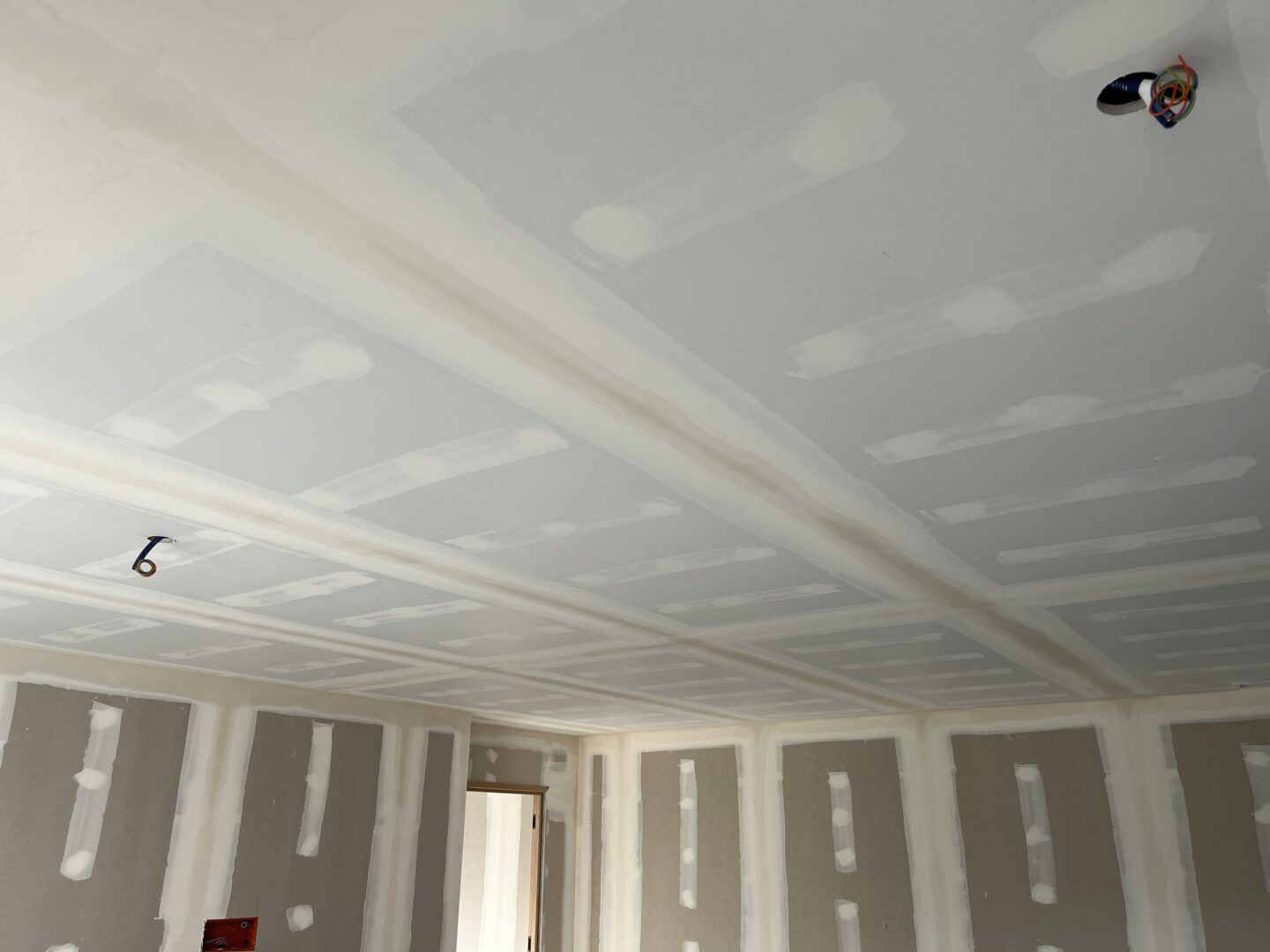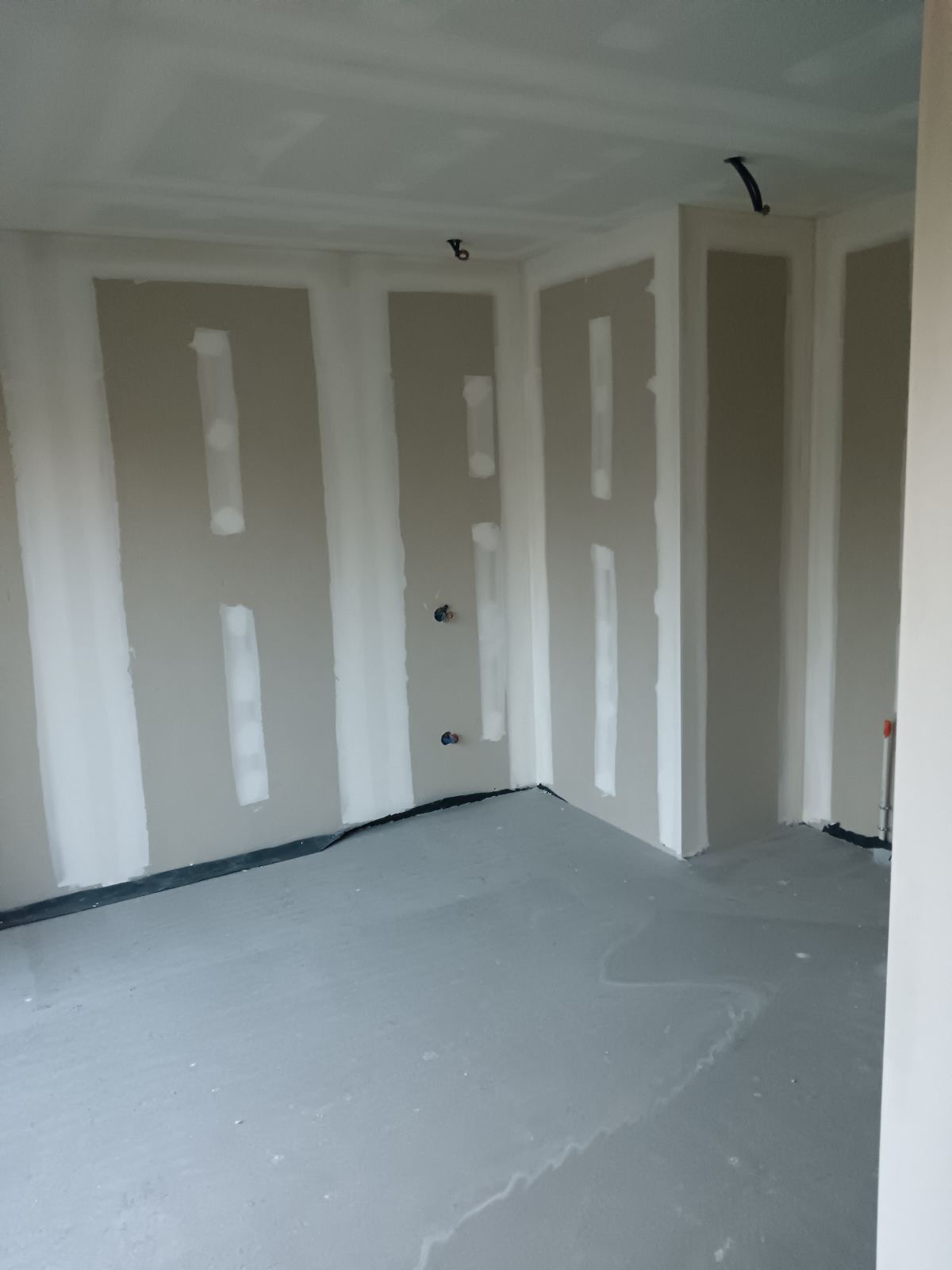 Les plaques de plâtre sont jointées entre elles par une couche d’enduit sur chaque bord. Une bande de papier sur l’enduit est ensuite appliqué, ainsi qu’une deuxième couche d’enduit pour fixer la bande de papier. Elles sont enfin poncées jusqu’à ce que les bords des plaques de plâtre soient lisses et uniformes avant d’être peintes.