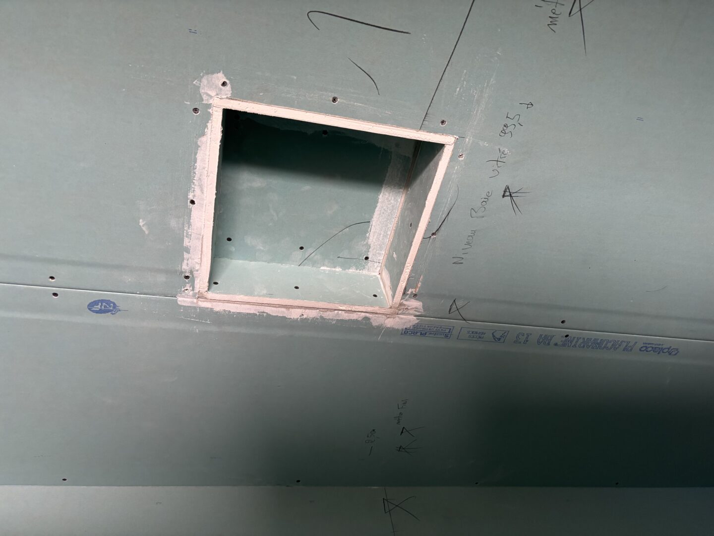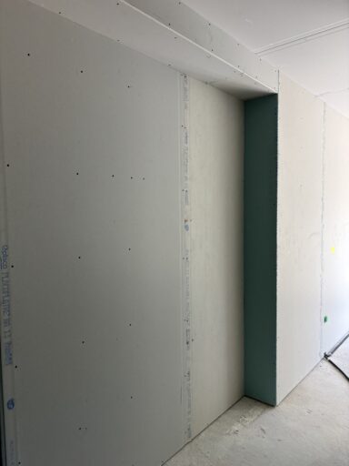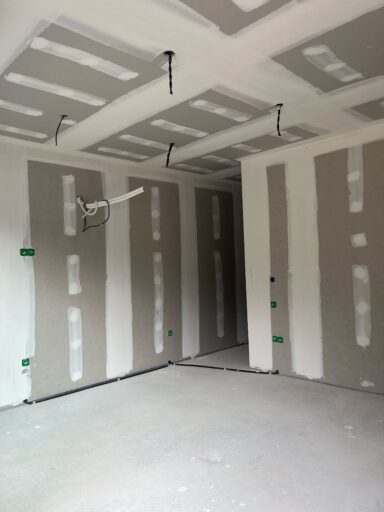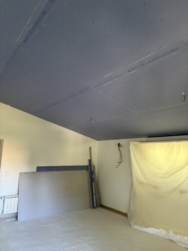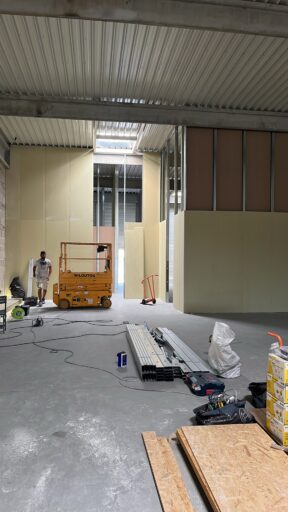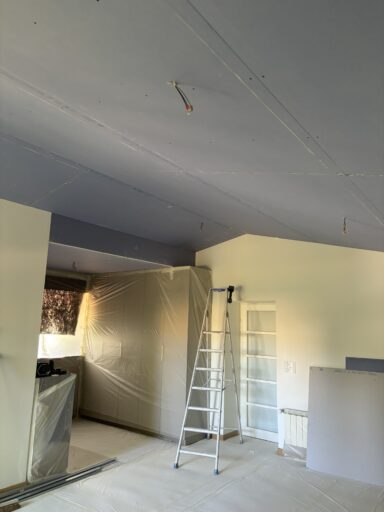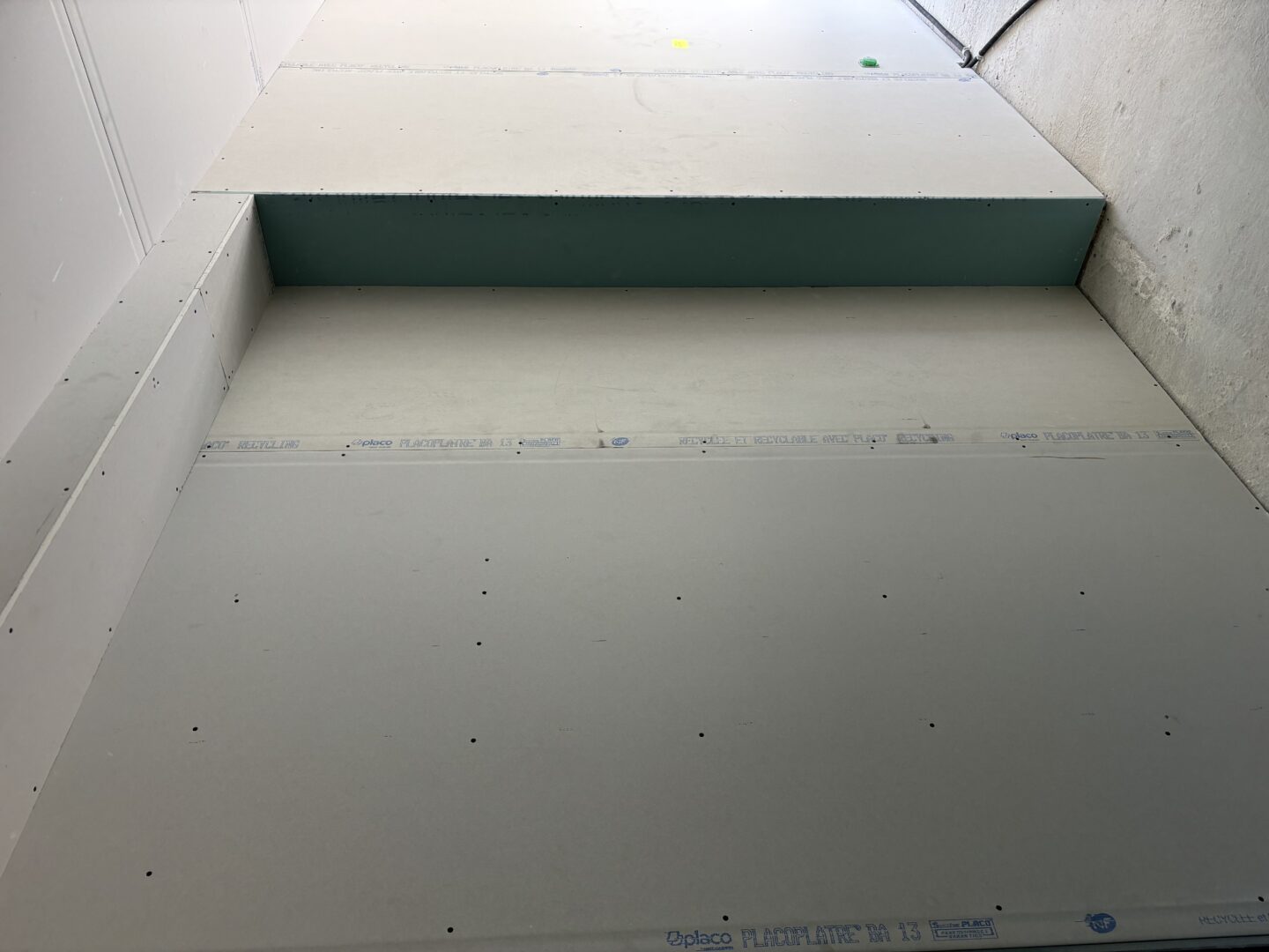 Les plaques de plâtre sont sélectionnées selon l’usage de la pièce : phoniques, hydrofuges et/ou ignifugées. Une fois l’ossature terminée, les plaques de plâtre sont alors découpés et fixées pour recouvrir les faux-plafonds, cloisons et doublages créés.