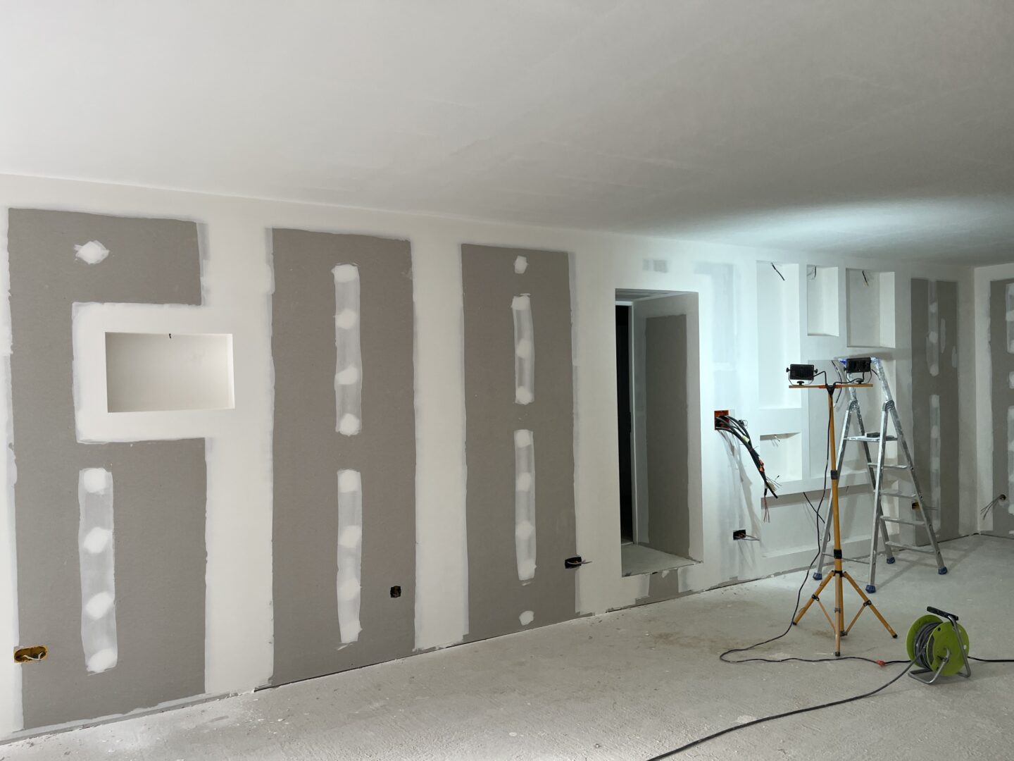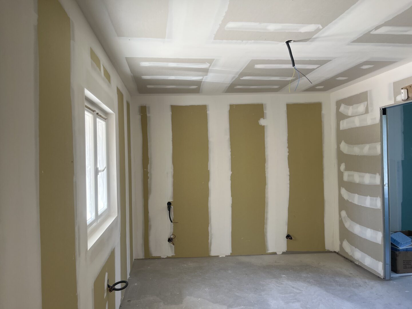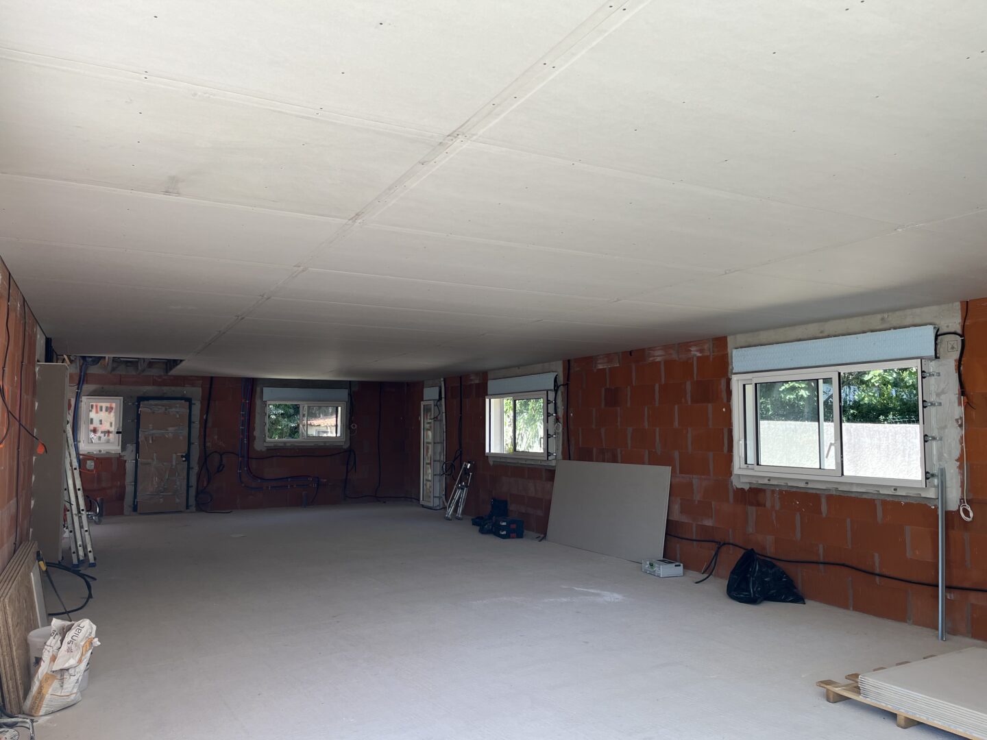 Les plaques de plâtre sont sélectionnées selon l’usage de la pièce : phoniques, hydrofuges et/ou ignifugées. Une fois l’ossature terminée, les plaques de plâtre sont alors découpés et fixées pour recouvrir les faux-plafonds, cloisons et doublages créés.